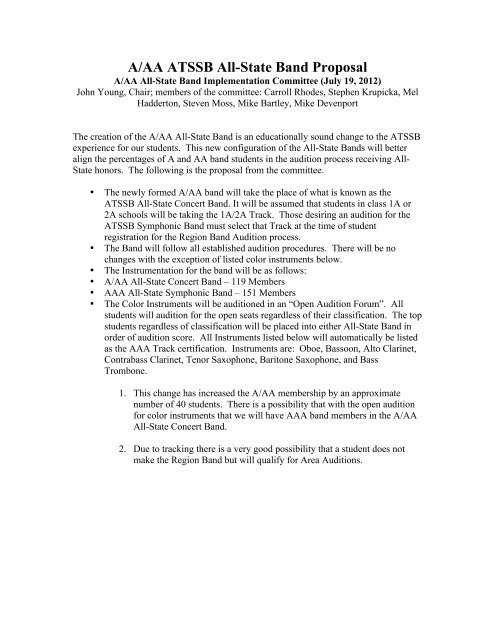 A/AA ATSSB All-State Band Proposal