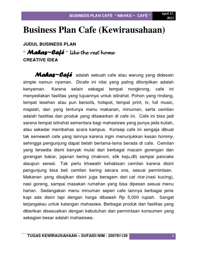 DOC) CONTOH TUGAS KULIAH BISNIS PLAN | aby kembar - Academia.edu