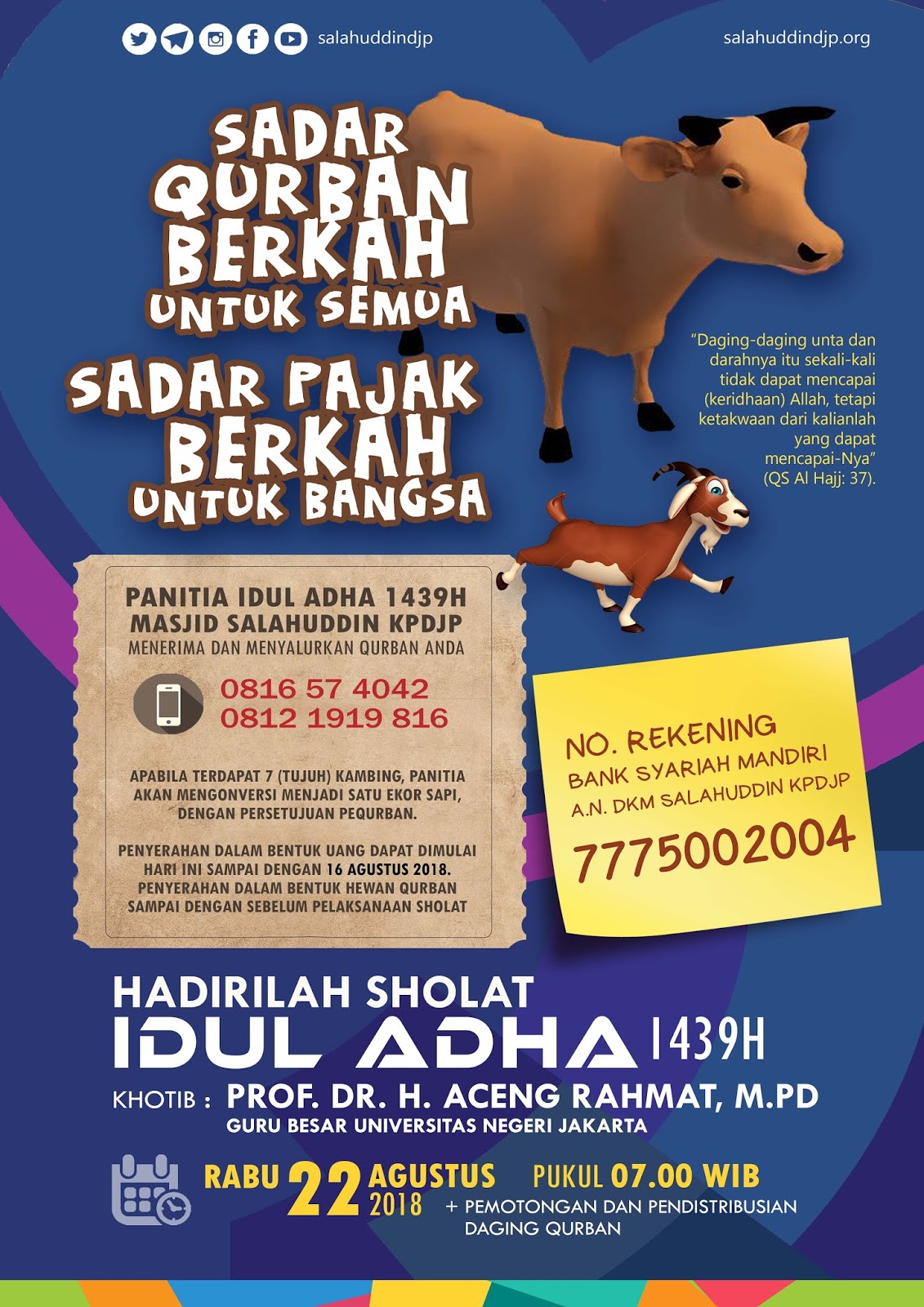 Idul Adha 1439H : Pemberitahuan Kegiatan dan Himbauan Berqurban | Masjid Salahuddin KPDJP