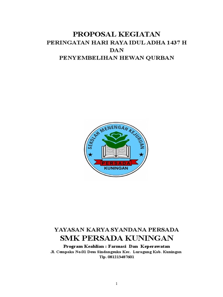 Proposal Kegiatan Idul Adha 2016 Smk Persada Kng
