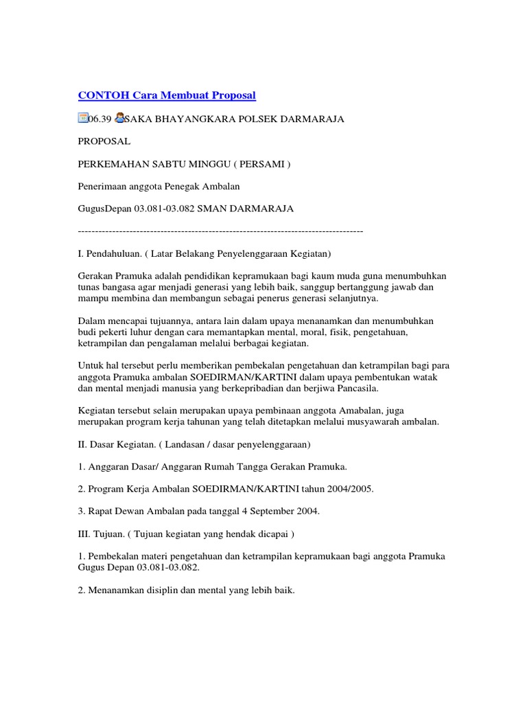 PENERIMAAN ANGGOTA PENEGAK AMBALAN PERSAMI PROPOSAL PERKEMAHAN SABTU MINGGU (PERSAMI) PENERIMAAN ANGGOTA PENEGAK AMBALAN K… | Proposal