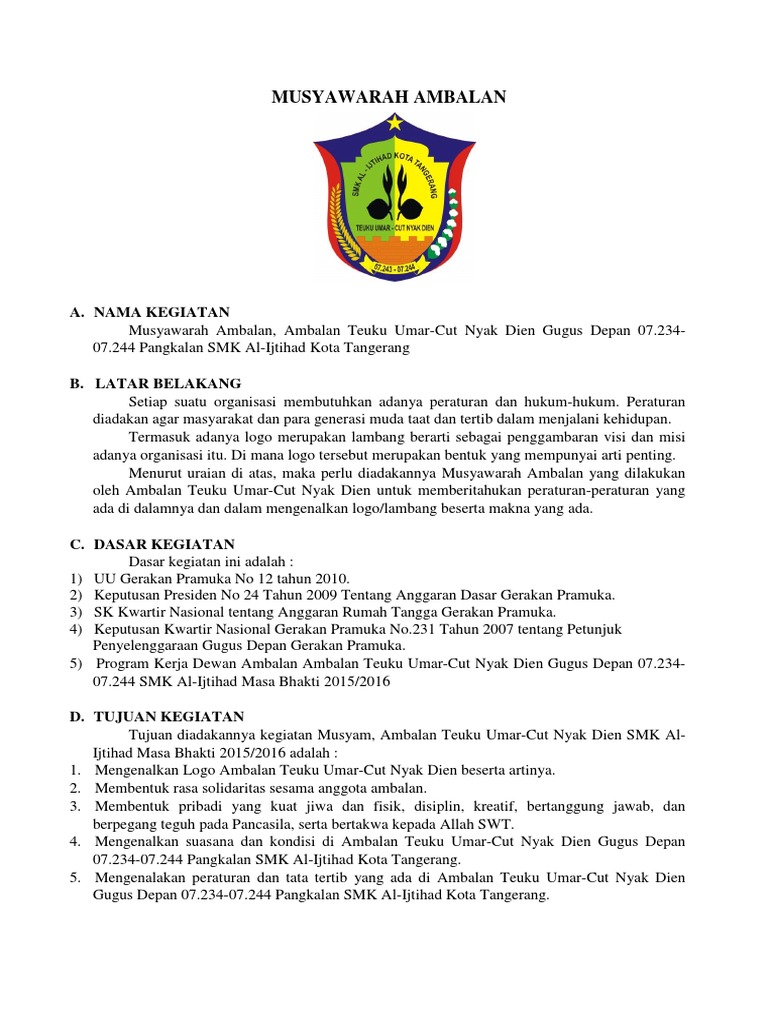 DOC) Proposal Musyawarah Penegak | Niko Permana - Academia.edu