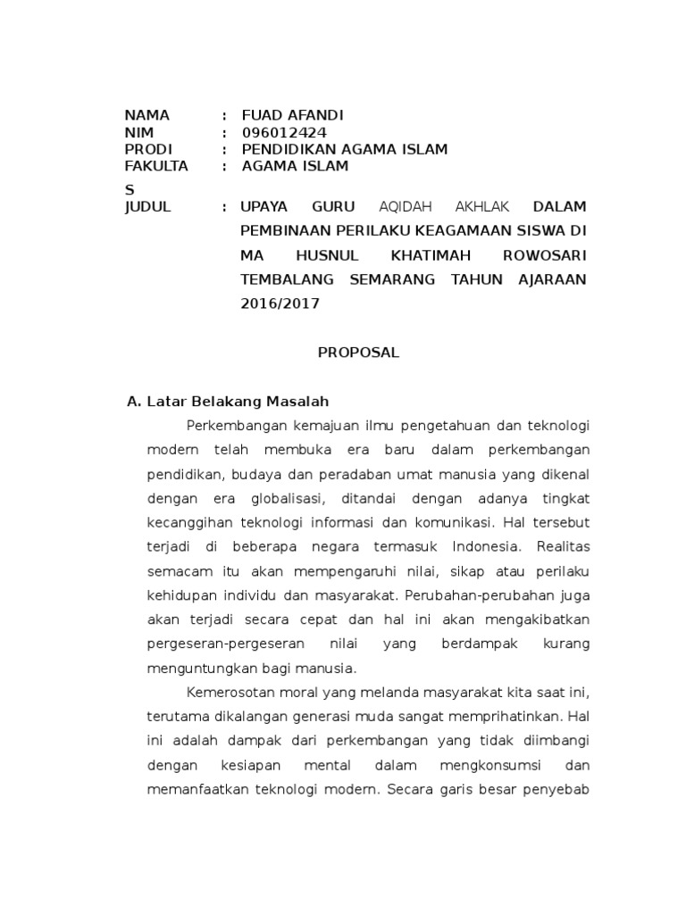 DOC) CONTOH PROPOSAL SKRIPSI PAI | Siti Muslichah - Academia.edu