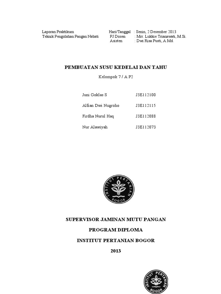 DOC) Makalah Pembuatan Tahu dari Biji Kedelai | Devil Bat - Academia.edu