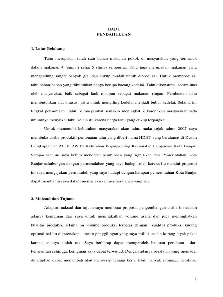 DOC) CONTOH PROPOSAL PENDIRIAN USAHA TAHU PEDAS | Calvin Mamoto - Academia.edu