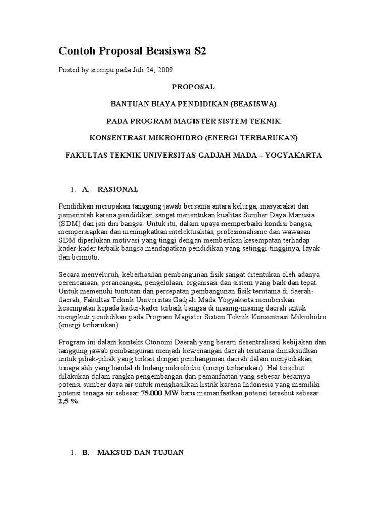 Contoh Proposal Rencana Studi Beasiswa Unggulan S1 Pdf - Temukan Contoh