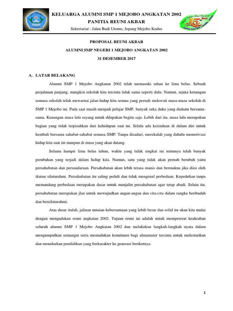 Download Contoh Proposal Kegiatan Reuni Akbar SMA, SMK, MA Atau Yang Sederajat - Guru Jumi