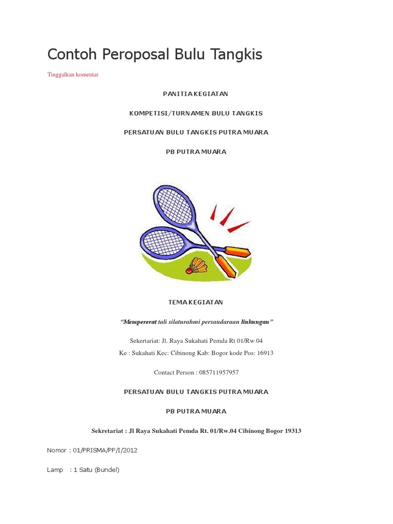 Contoh Proposal Pengajuan Dana Turnamen Bulutangkis - Gambarcu Gambar Lucu