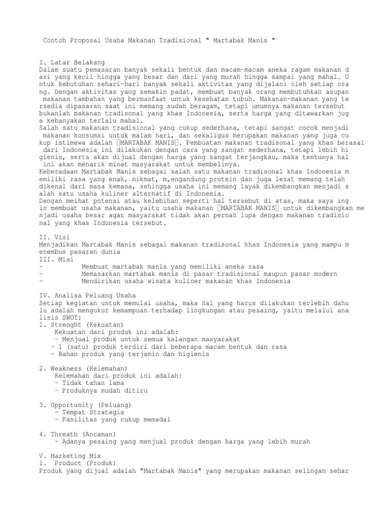 Contoh Proposal Usaha Makanan Martabak Manis - Berbagi Contoh Proposal