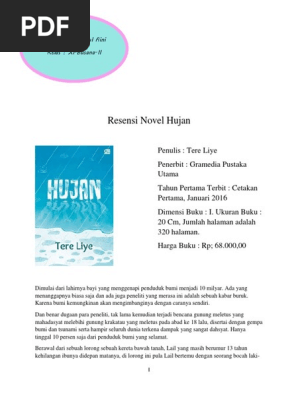resensi bahasa.docx - Resensi Novel Hujan Karya Tere Liye Oleh David Benedictus Situmorang RESENSI NOVEL HUJAN Nama David Benedictus Situmorang Kelas XI | Course Hero