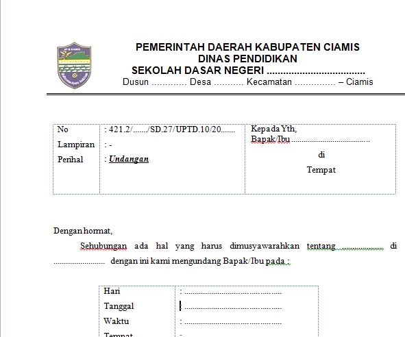 Contoh Surat Dinas Undangan Rapat Wali Murid – Berbagai Contoh