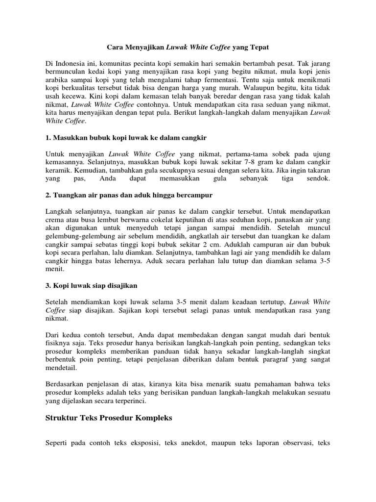 teks prosedur cara membuat luwak white coffee dalam bahasa inggris Archives - Tukang Review