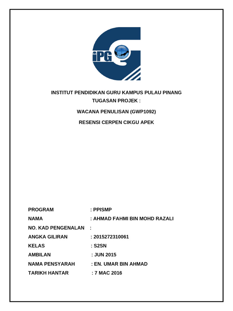 Resensi Cerpen Cikgu Apek
