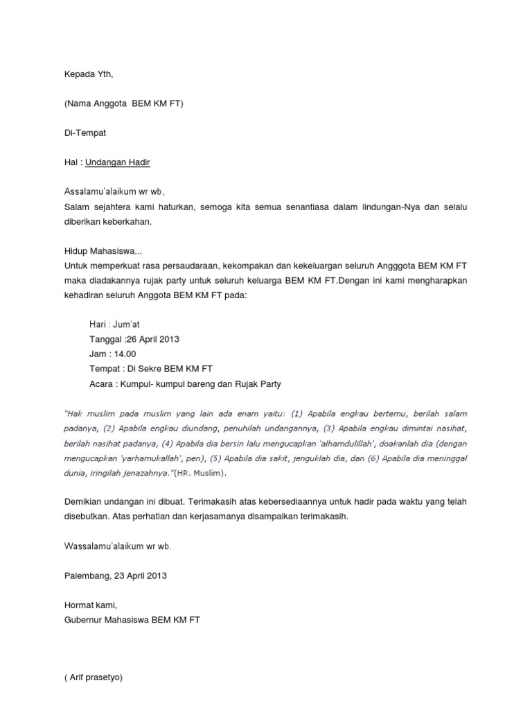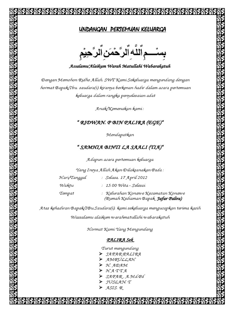 DOC) contoh surat undangan MUSYAWARAH KELUARGA | rahmat hidayatullah - Academia.edu