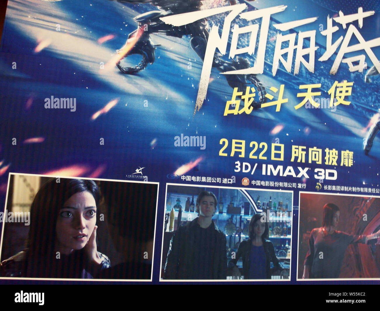 View of a poster of the American action film “Alita: Battle Angel” at a cinema in Yichang city, central China’s Hubei province, 27 February 2019. A Stock Photo - Alamy