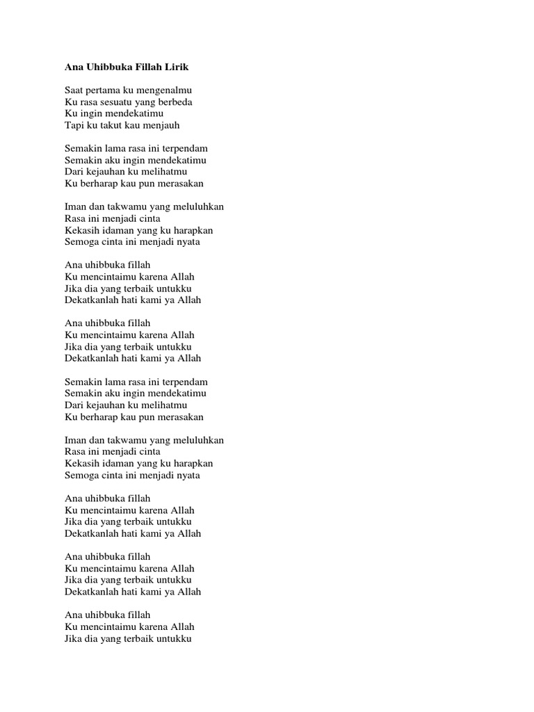Lirik lagu Ana Uhibbuka Fillah - Aci Cahya - YouTube | Lirik lagu, Lagu, Lirik