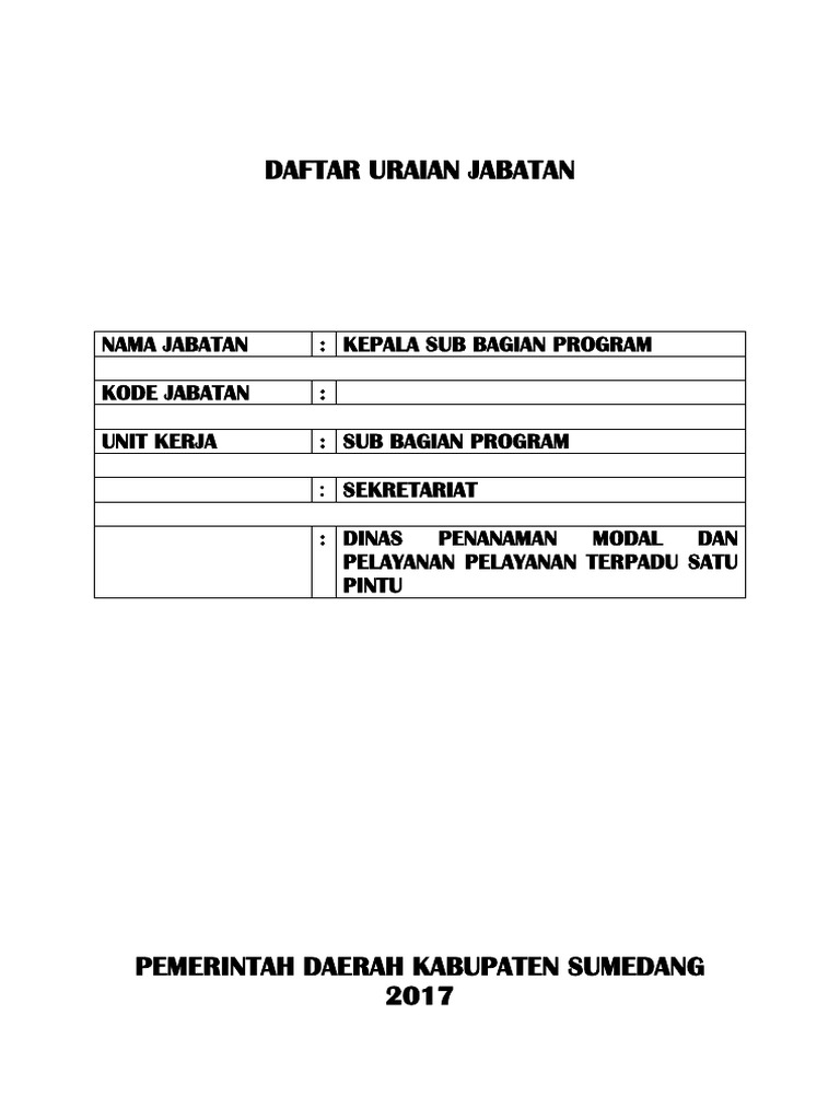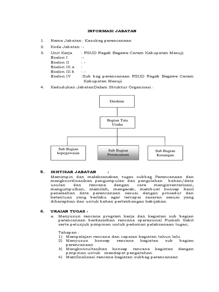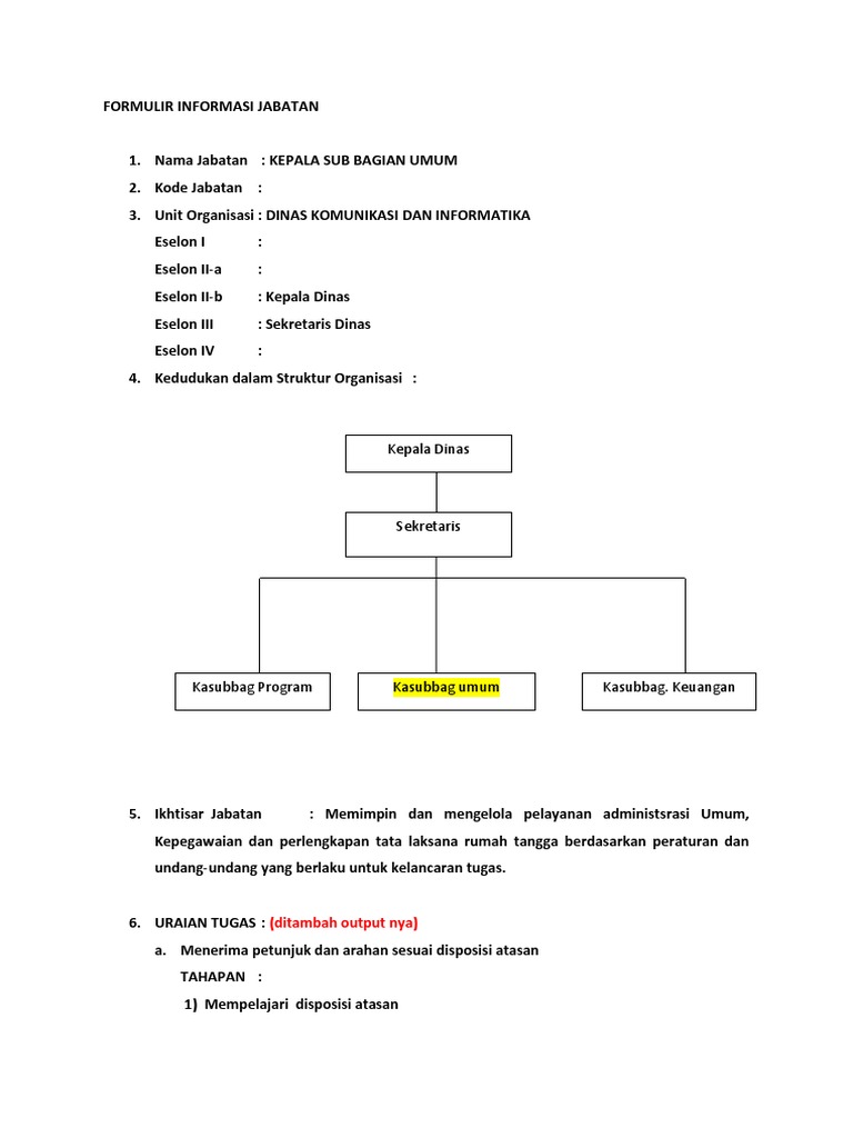 DOC) Uraian Jabatan Kasubag PEP staf | Saskia Sriharyono …