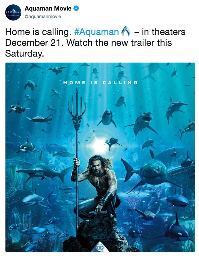 First Aquaman poster is released ahead of the trailer debut this weekend