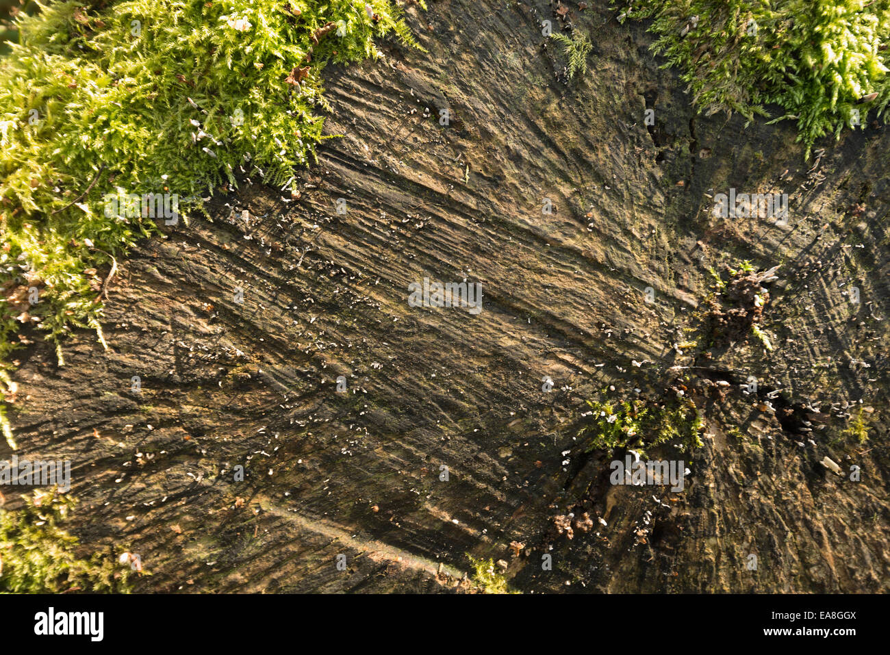 Encroaching and invading moss begin to cover the stump of a dead sawn Stock Photo - Alamy