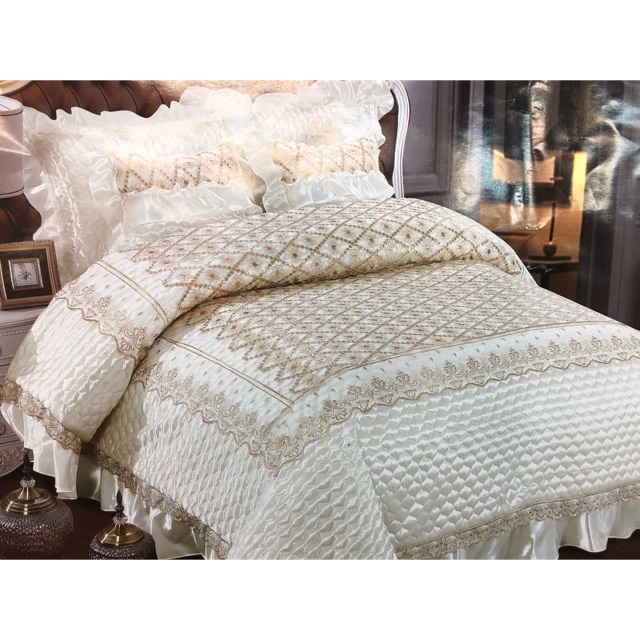 Bed Cover dan Sprei Pengantin Satin Import Gold Flower | Shopee Indonesia