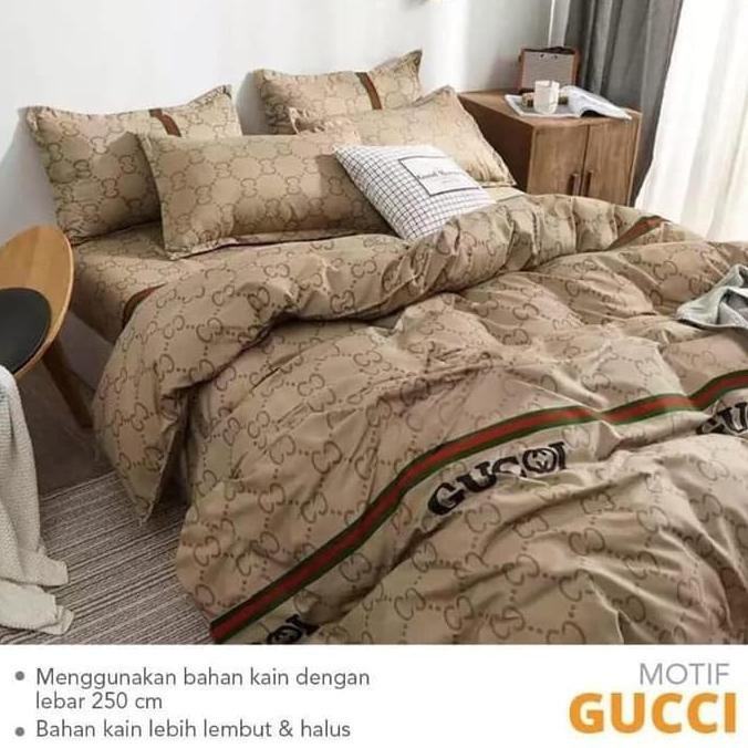 Jual Bed cover set katun lembut Gucci Elegan Brown 160x200/180x200 …