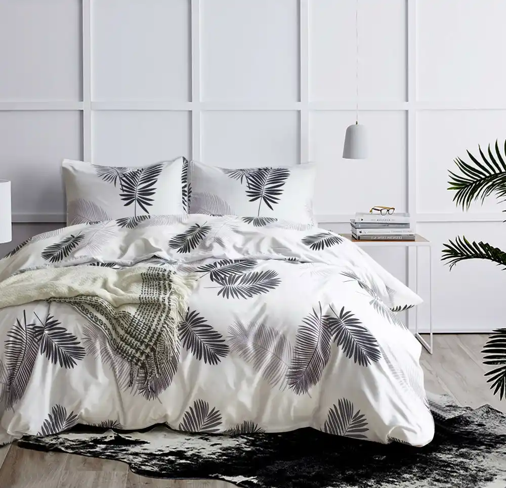Black White Bed Cover Set 2/3pcs Green Gold Palm Leaves Bedding Set Twin Queen King Size Pastoral Bed Linen Quilt Cover No Sheet|Bedding Sets| - AliExpress