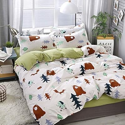 KFZ Bedding Set Full, 3PCS Duvet Cover Set with 1 Comforter Cover (No Comforter Insert), 2 Pillowcases, Bear Fox Elephant Woodland Patterned, Breathable Bed Set for Kids and Teens: Amazon.sg: Home