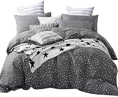 AMZTOP Latest Collection Star Duvet Cover Set Twin Kids Duvet Cover 3 Piece Bedding Set Comforter Cover Black White Starry Sky Quilt Cover with 2 Pillow Shams Home Bedding Set,NO Comforter NO