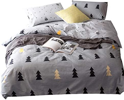 FenDie Pine Tree Printed Bedding Set - Twin Duvet Cover Fitted 2 Pillow Covers, Cotton Gray 3 Piece Reversible Comforter Cover, No Comforter: Amazon.sg: Home
