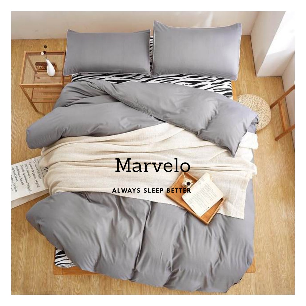 Marvelo Bedcover Sprei Set Katun Lembut Full 140x200 - Abu Abu …