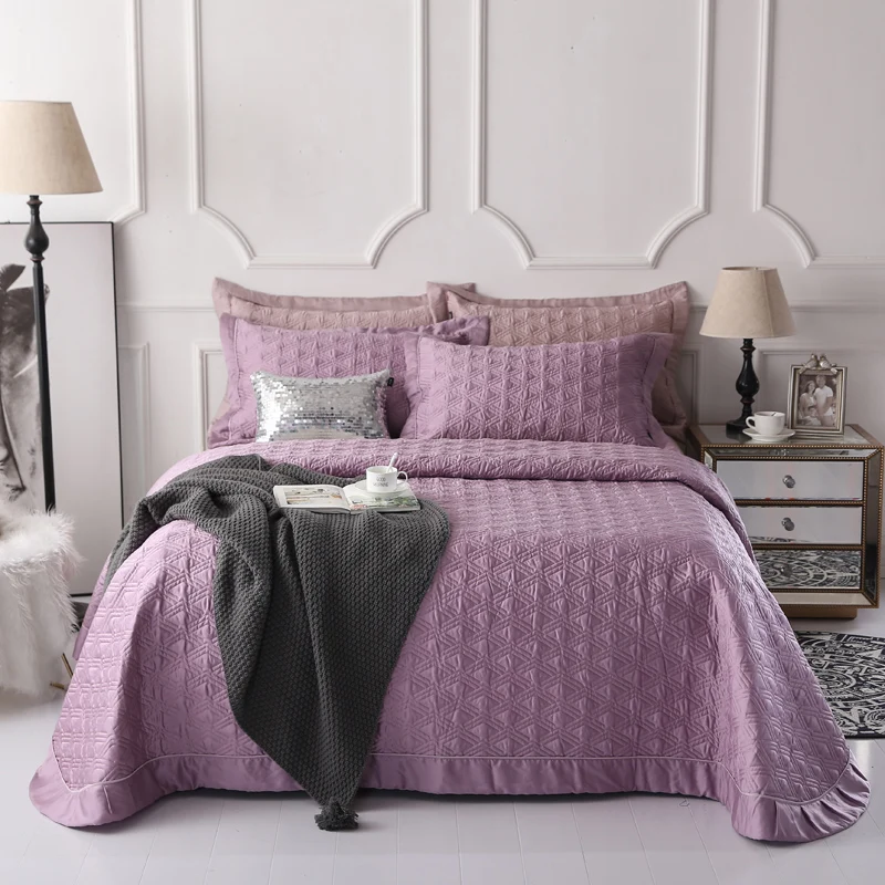 Mewah Ungu Abu abu Biru 100% Tencel Katun Quilted Material Bed Cover Sprei Selimut Musim Panas Selimut Sarung Bantal 3 buah|Seprai| - AliExpress