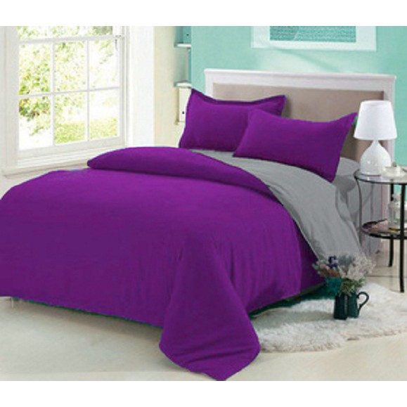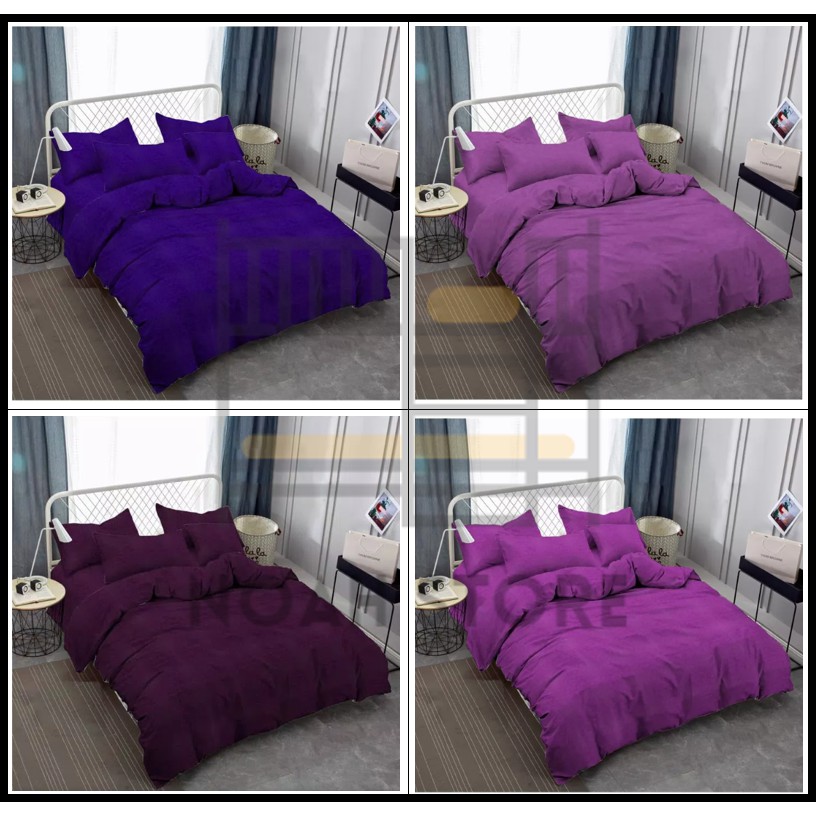 Jaxine Bedcover Set, Plain Cotton Purple Color | Badcover Bed Sheet Set | Cheap Betcover | Batcover | Shopee Singapore