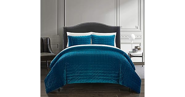 Chic Home Chyna 3 Piece Comforter Set Luxurious Hand Stitched Velvet Bedding - Decorative Pillow Shams Included, King, Teal: Amazon.sg: Home