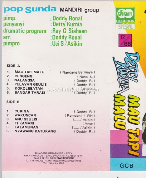 Def Hysteria Music Store: Detty Kurnia - Mau Tapi Malu Audio Kaset Pop Sunda Mandiri Group Dian Records