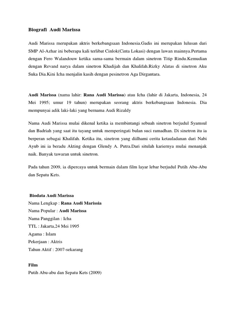 BIODATA ARTIS INDONESIA (Actrees) - Audi Marissa - Wattpad