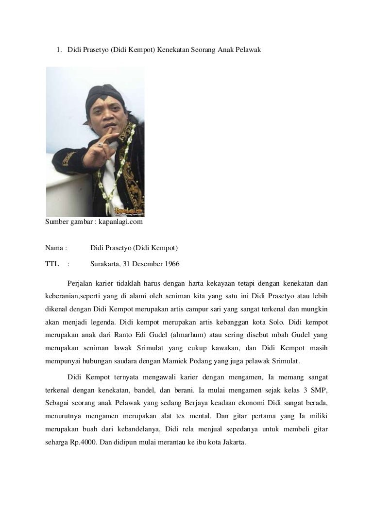 Biografi Seniman Indonesia: Didi Prasetyo (Didi Kempot) Kenekatan Seorang Anak Pelawak