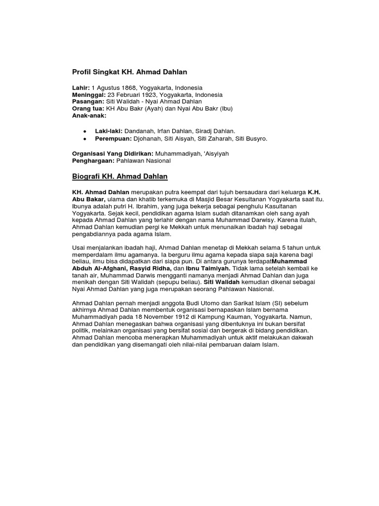 Biografi Tentang Kh Ahmad Dahlan
