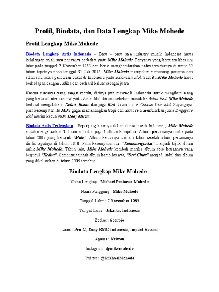 Profil, Biodata, dan Data Lengkap Mike Mohede