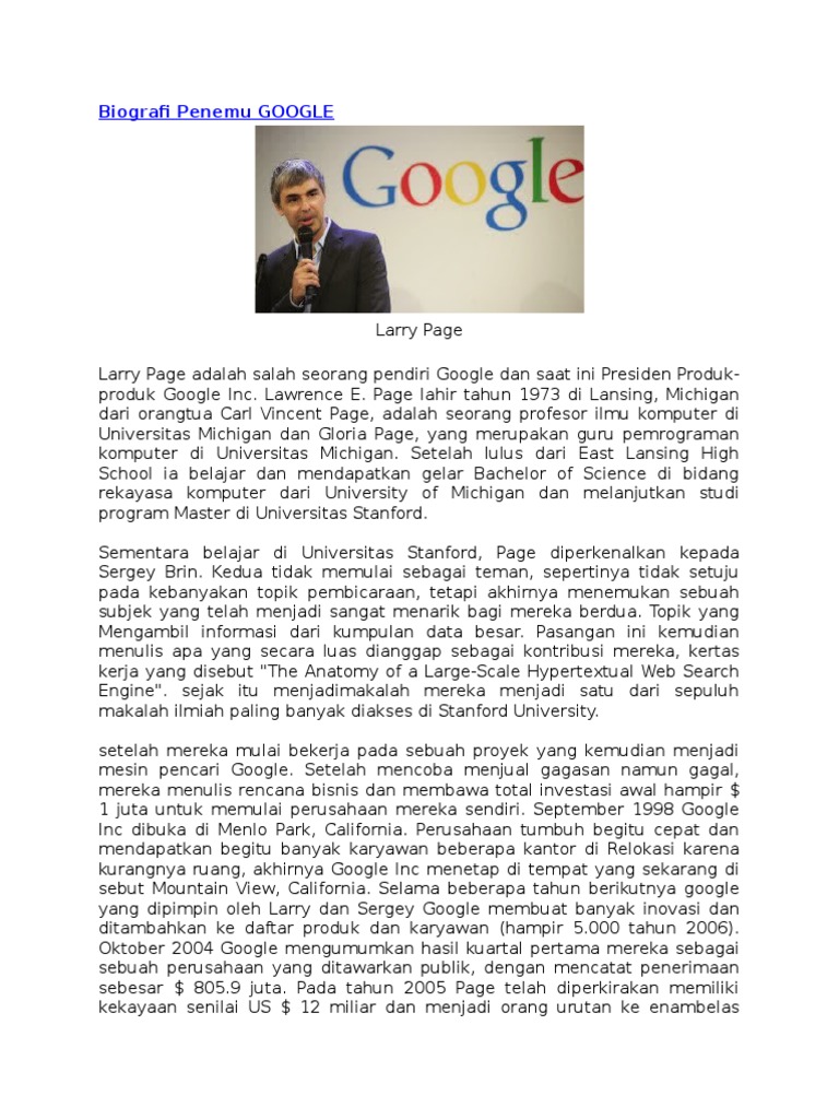 Biografi pencipta dan penemu google | neo-pedia