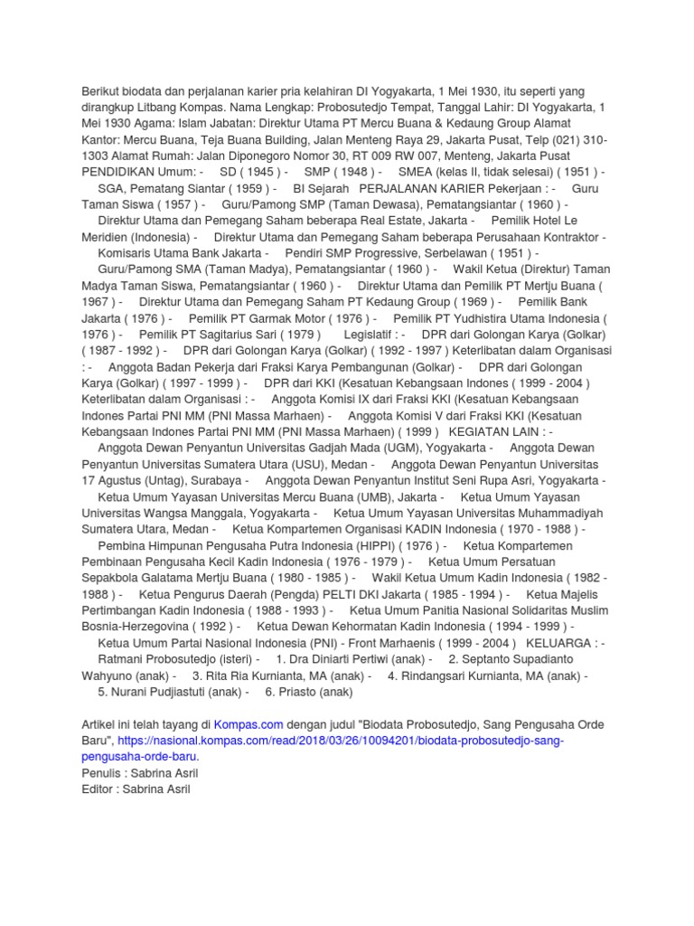 Biodata Probosutedjo dan Perjalanan Karir, Pengusaha Zaman Orde Baru - Sriwijaya Post