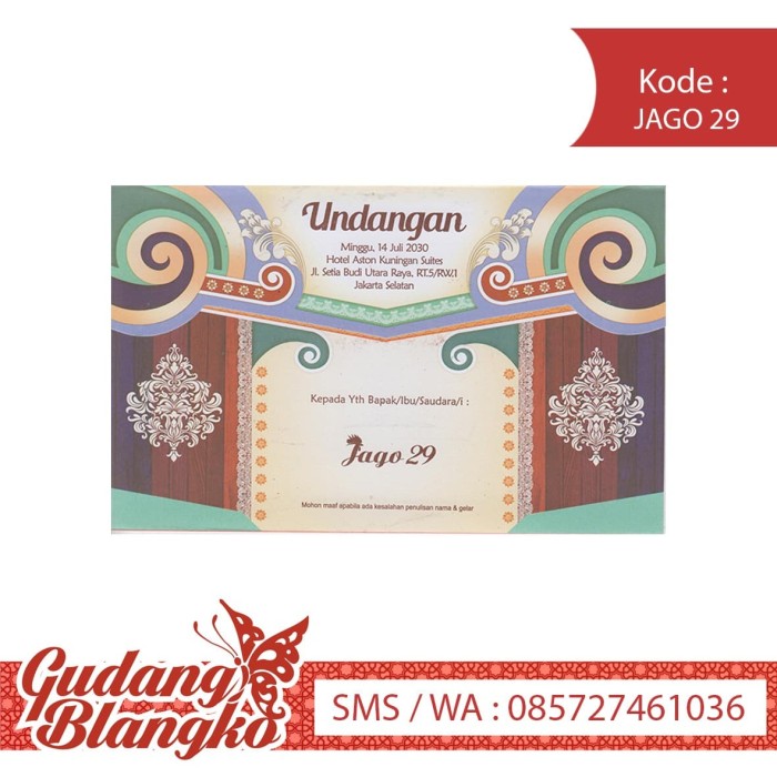 Jual Blangko Undangan Pernikahan Unik Jago 29 Harga Termurah - Kota Semarang - gudang blangko undangan | Tokopedia