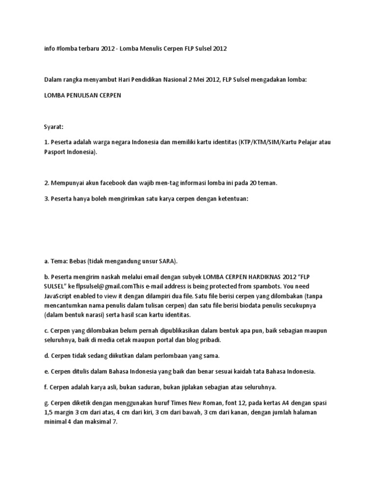 DOWNLOAD FORM LOMBA MENULIS CERPEN KEMERDEKAAN | Armada Town Square