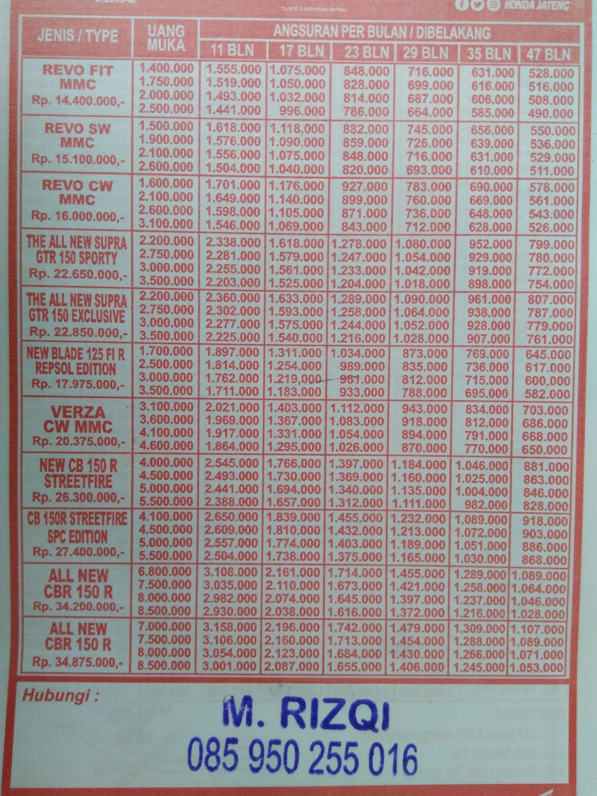 BROSUR DAFTAR HARGA KES KREDIT MOTOR HONDA LAKSANA PURWODADI Grobogan - LAKSANA MOTOR HONDA - Dealer Purwodadi Grobogan - Brosur Harga Kredit Kes 2019 2020 -Promo - pasarx.com