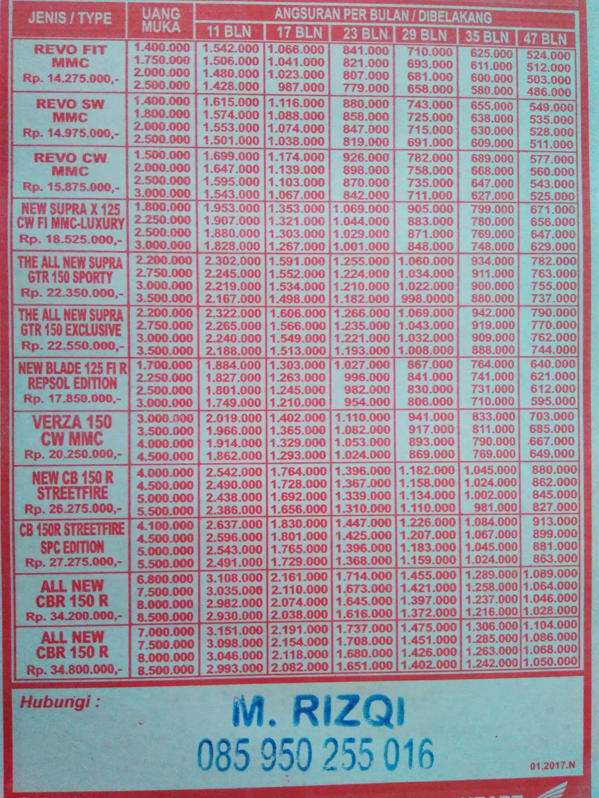 2019-2020 BROSUR DAFTAR HARGA KREDIT MOTOR HONDA Dealer Laksana Purwodadi Grobogan - TOFA LAKSANA Motor Honda - Dealer Purwodadi Grobogan- Brosur daftar harga kredit cash