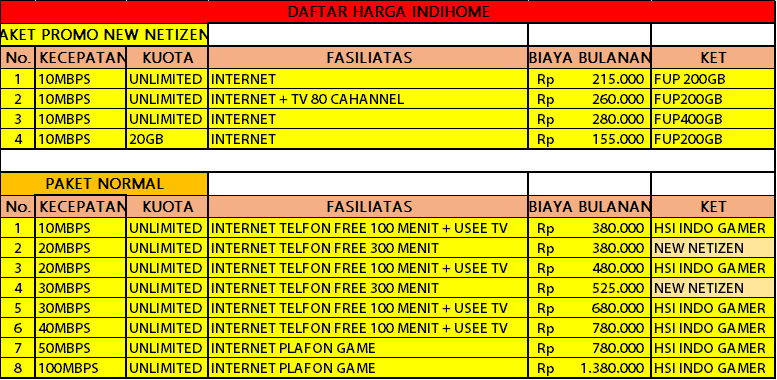 Daftar Harga Paket Internet IndiHome Terbaru 2018 | Warung Komputer