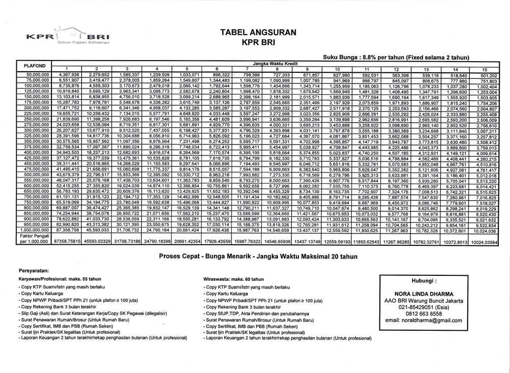 Tabel Angsuran Kpr Bank Bri 2017 Infoperbankan Com Infoperbankan Com – cute766