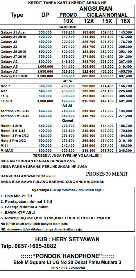 Berikut DP dan cicilan Hp selama 12… - Kredit HP wilayah Cileunyi - Bandung | Facebook