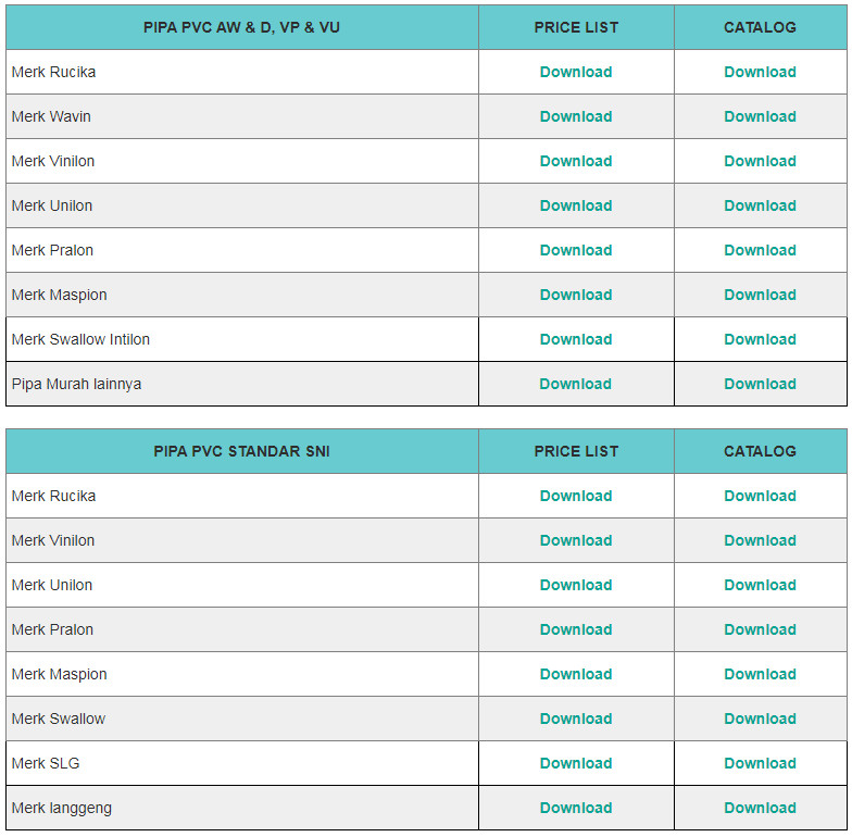 Download Harga dan Katalog Pipa PVC Terlengkap 2020 - Agen Distributor Pipa