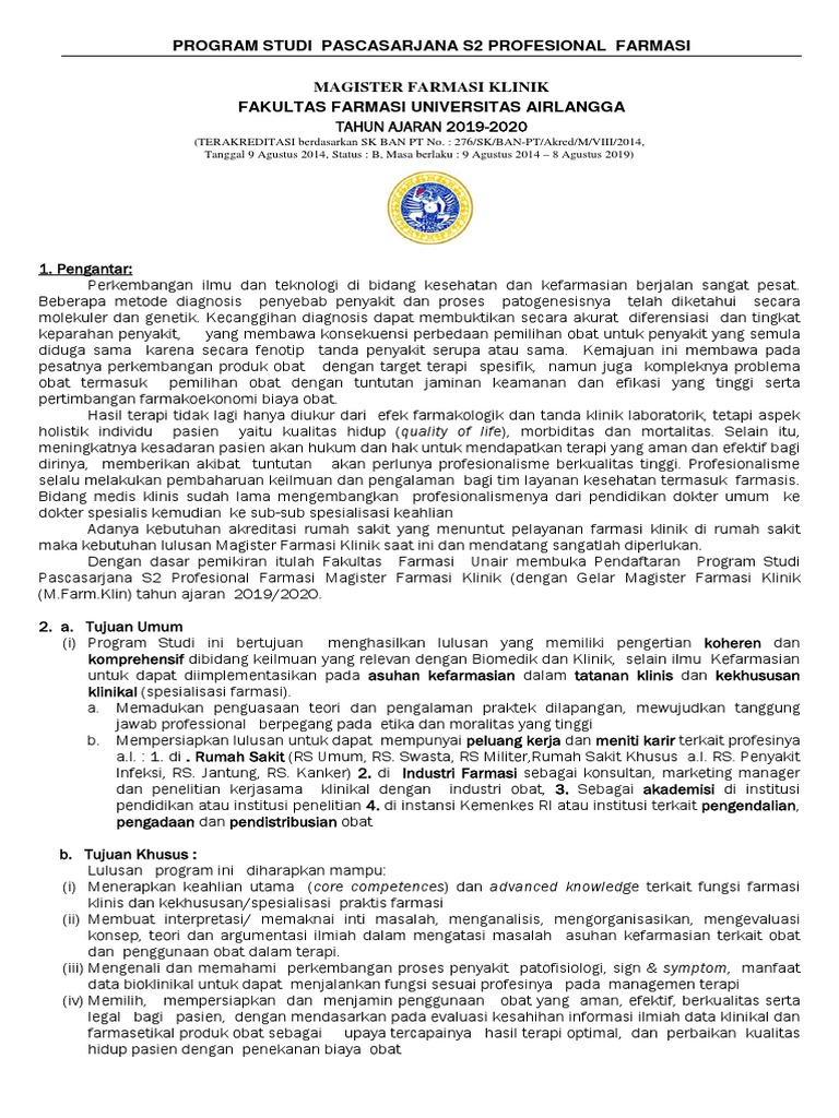 Program Studi Pascasarjana S2 Profesional Farmasi
