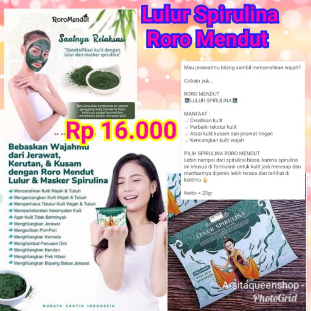 Roro mendut paket Masker Spirulina dan lulur spirulina 20 Gram | Lazada Indonesia